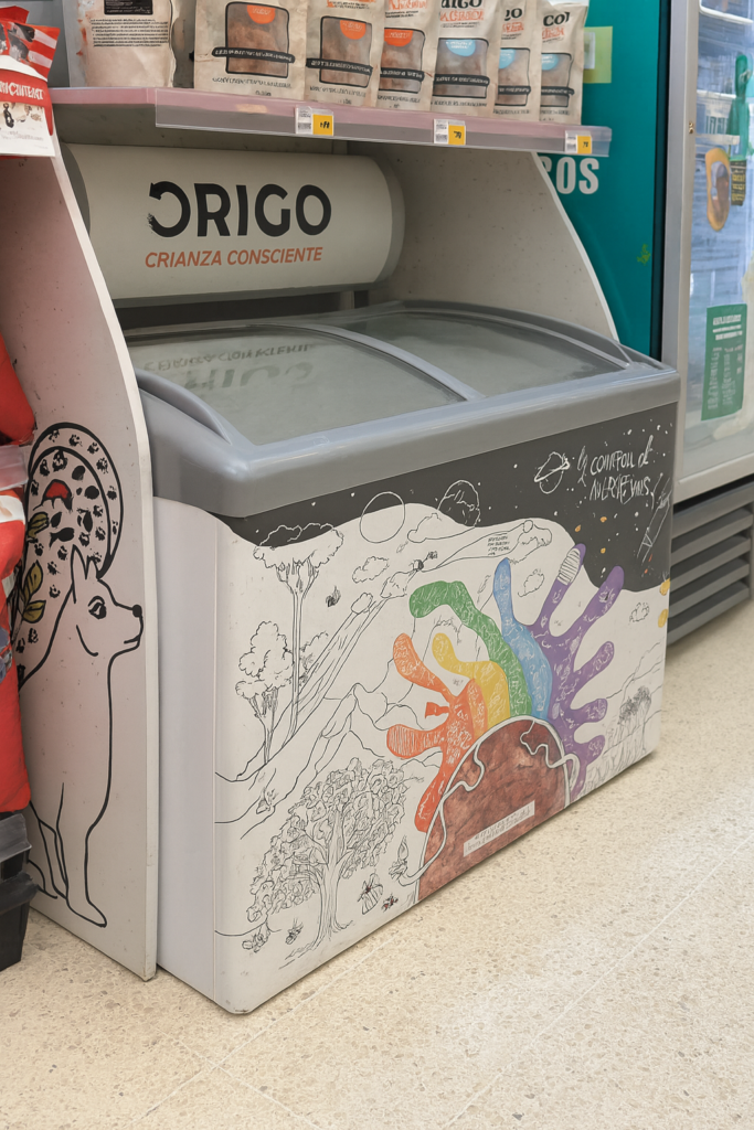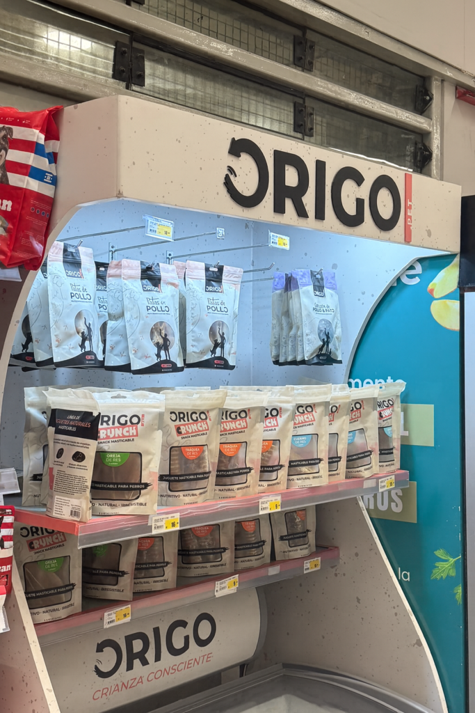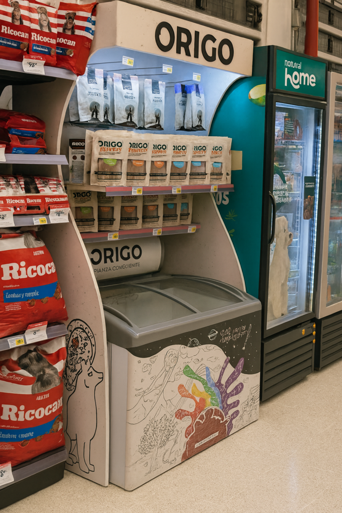 Este proyecto se centró en el diseño de módulos de exhibición retail para ORIGO, una marca de alimentos naturales para mascotas comprometida con la crianza consciente. El desafío fue crear un sistema de exhibición que no solo comunicara los valores de la marca, sino que también destacara en el punto de venta entre los competidores tradicionales.
