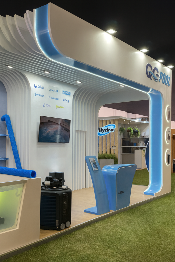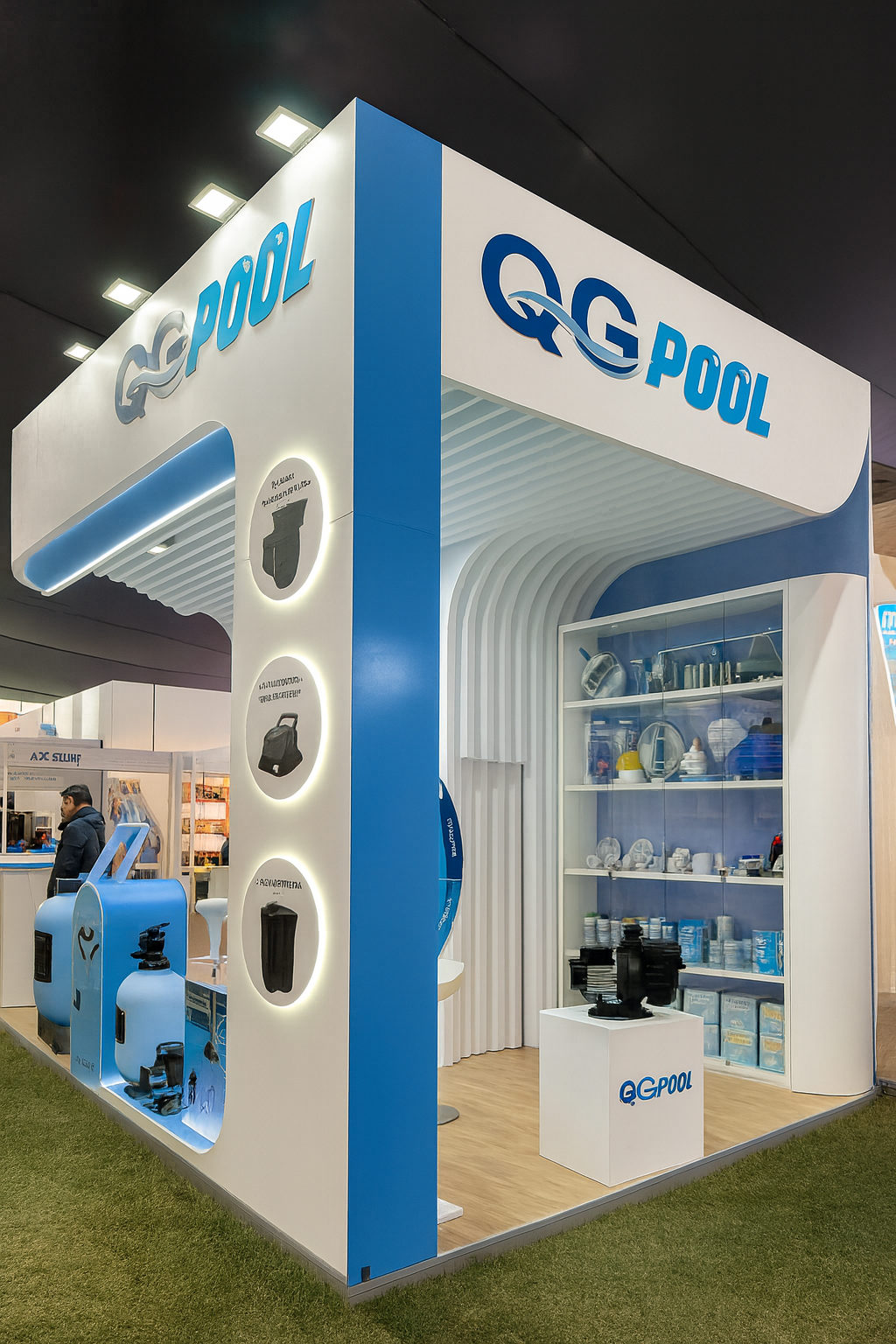 A través de iluminación estratégica, materiales modernos y un diseño inmersivo, el stand crea un fuerte impacto visual, distinguiendo a la marca y posicionándola como líder dentro de su industria. El resultado es un stand de exhibición que encarna la esencia de QGPool: innovación, calidad y confianza en cada proyecto de piscina.