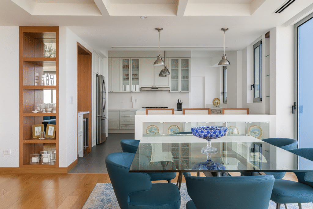 Para la renovación del Apartamento 901 en Pacific Icon, la estrategia de diseño se centró en maximizar la eficiencia espacial y elevar la experiencia de vida en su conjunto. La intervención transformó el comedor de doble altura original en un nuevo dormitorio principal, una decisión intencionada que redefinió la distribución sin comprometer el carácter del departamento.