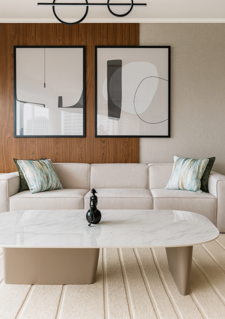 El mobiliario cuidadosamente seleccionado y los detalles personalizados aportan calidez y sofisticación, dando como resultado un apartamento que se siente sereno pero a la vez dinámico.